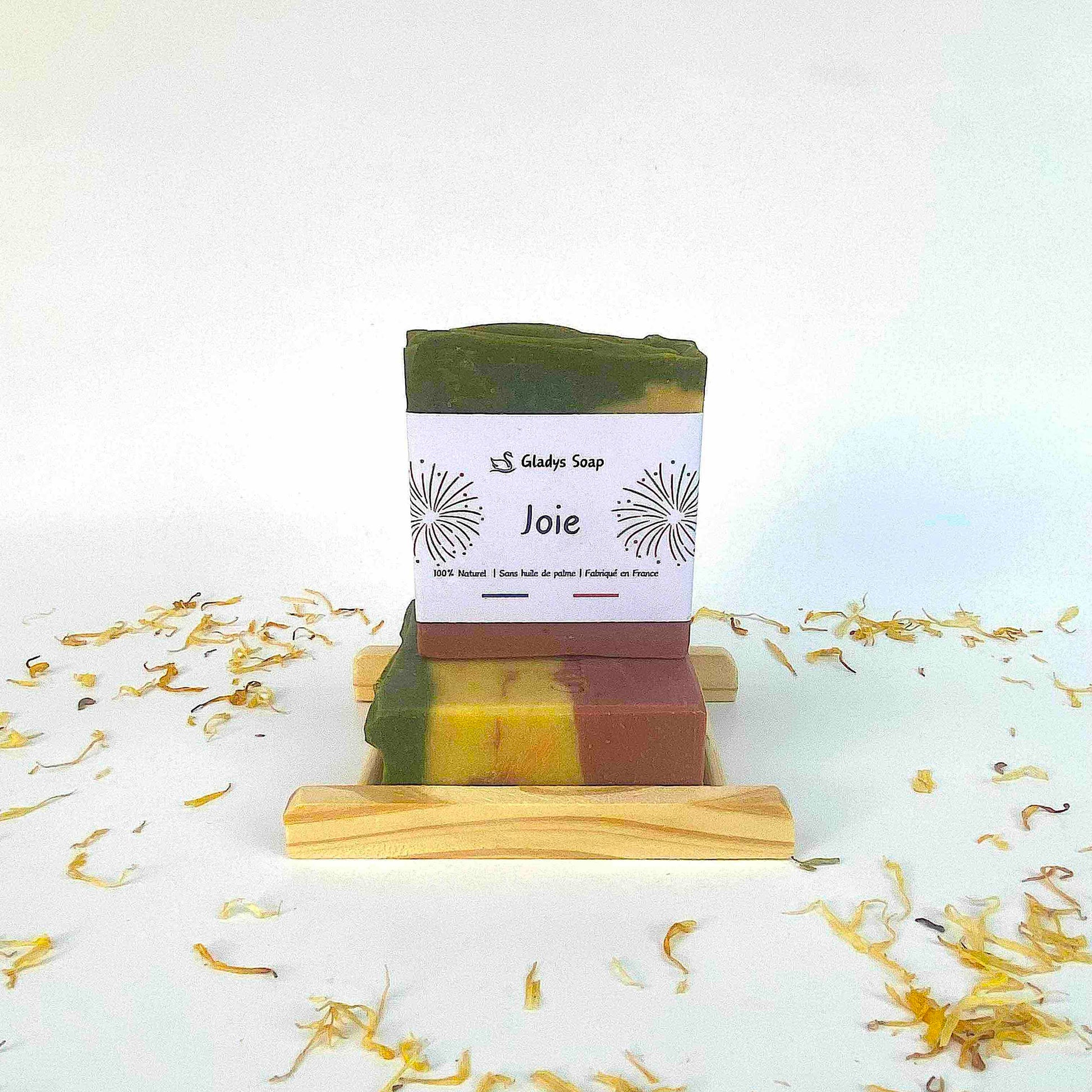Huile d'olive extra vierge 100% saponifiée, huile de coco, beurre de karité , huile de ricin, huile de pépins de raisin, argile rouge marocaine, argile jaune, kaolin, huile essentielle d'orange, huile essentielle de clou de girofle, huile essentielle de Litsea Cubeba, huile essentielle de pin, huile essentielle de bergamote